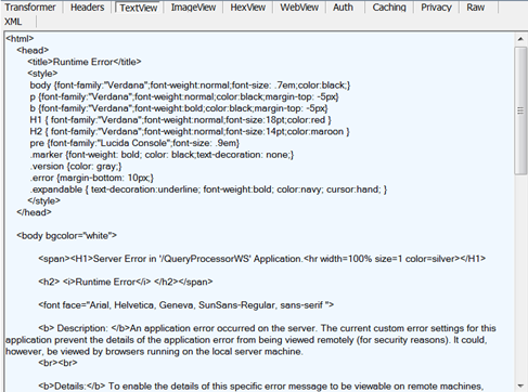 This didn’t explain why I was getting this error. After all, I could still talk to the same web service using IE/FF, and the same C# code worked just fine from work. I was sending the same request (so I thought anyway!) to the same web service, only difference was one was from the browser and the other from the emulator, so why would I keep getting a server error? This eliminated the possibility that it was something to do with the server authentication/security cos don’t think the server cares about the client the request originated from. This is when I started comparing the request from the browser and the request from the Win7 phone app using Fiddler.
