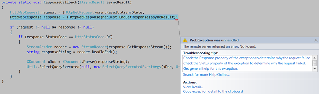 A first chance exception of type ‘System.Net.WebException’ occurred in System.Windows.dll