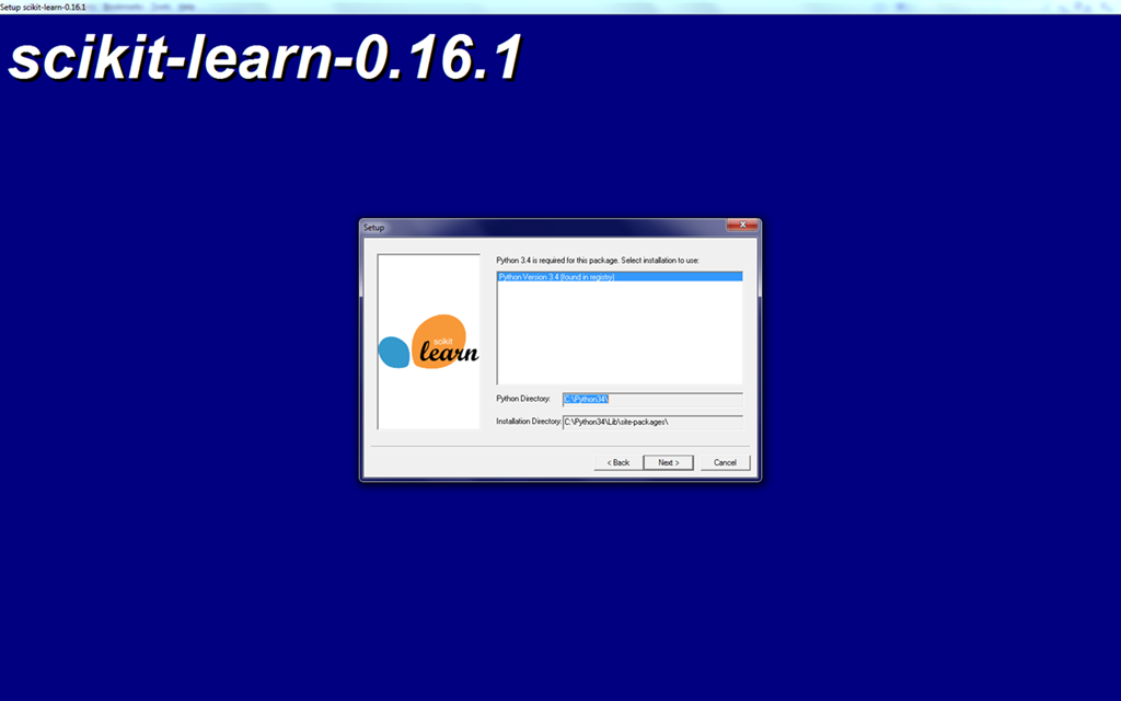 Similarly, I could install other modules too. sklearn installed like a charm: