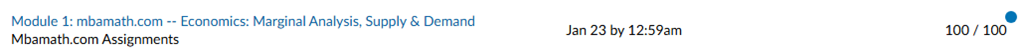 We are currently learning about marginal analysis. Having to recall some math from my undergrad days, but it’s fun and definitely more straightforward than some of the engineering courses I had to take. https://www.mbamath.com/ is the companion site where most of the quizzes and assignments need to be completed for this topic. First one already done (after spending a good 3-4hrs or so).
