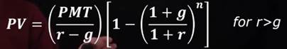 With that understanding, a bond’s present value can be calculated using these formulas (Regan, n.d., Bonds) where g is 1 for constant payments: